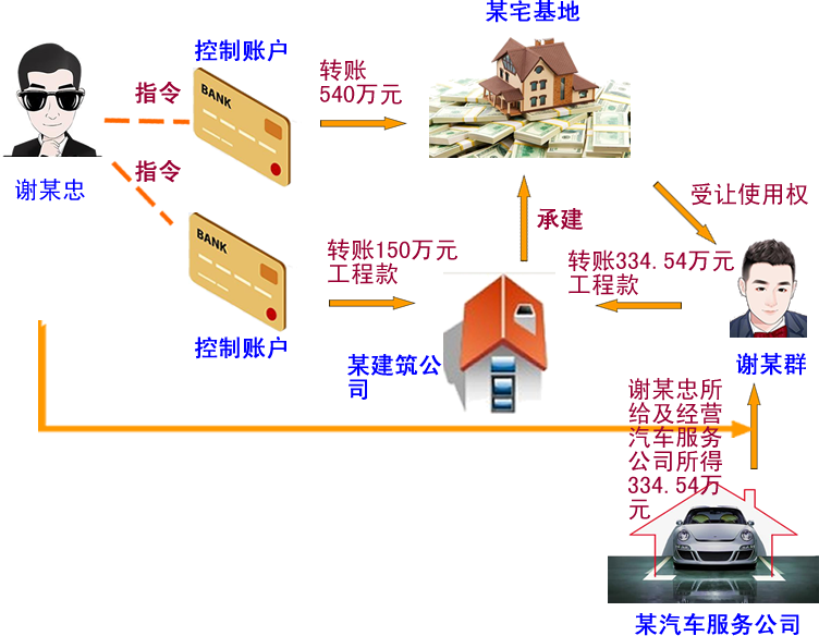 2013年起,以謝某忠為首的黑社會(huì)性質(zhì)組織與走私集團(tuán)勾結(jié),以黑護(hù)私、以私斂財(cái),非法獲利共計(jì)超過(guò)人民幣1億元。為掩飾、隱瞞組織、領(lǐng)導(dǎo)黑社會(huì)性質(zhì)組織犯罪所得及產(chǎn)生的利益,謝某忠兒子謝某群、侄女婿王某彬、女婿黃某在明知謝某忠的資金系黑社會(huì)性質(zhì)的組織犯罪所得的情況下,配合謝某忠實(shí)施了一系列洗錢行為,采取提供賬戶資金、買賣或投資等方式協(xié)助轉(zhuǎn)移、轉(zhuǎn)換財(cái)產(chǎn),洗錢金額累計(jì)達(dá)8847.45萬(wàn)元人民幣、3000萬(wàn)元港幣。2020年4月1日,佛山市中級(jí)人民法院二審裁定謝某群、王某彬、黃某三人的行為均已構(gòu)成洗錢罪,判處有期徒刑五年六個(gè)月、三年三個(gè)月、一年九個(gè)月,并分別處罰金人民幣400萬(wàn)元、200萬(wàn)元、60萬(wàn)元,同時(shí)沒收被告人王某彬所退贓款人民幣4294750元上繳國(guó)庫(kù)。