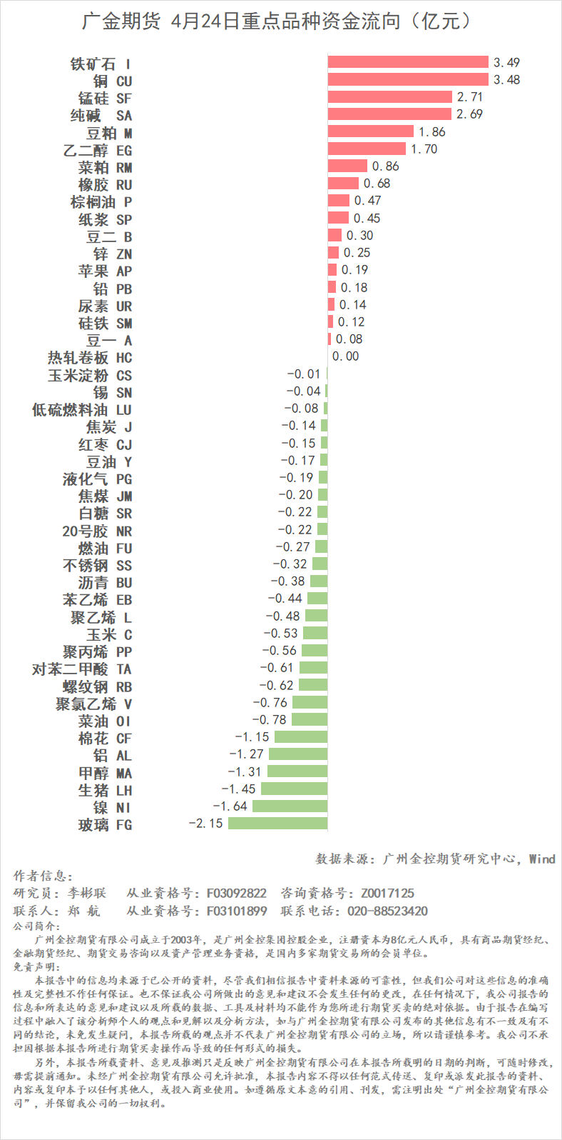 重點(diǎn)品種資金流向與基差日?qǐng)?bào) 20240424