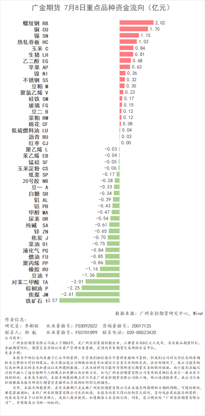 重點(diǎn)品種資金流向與基差日?qǐng)?bào) 20240708