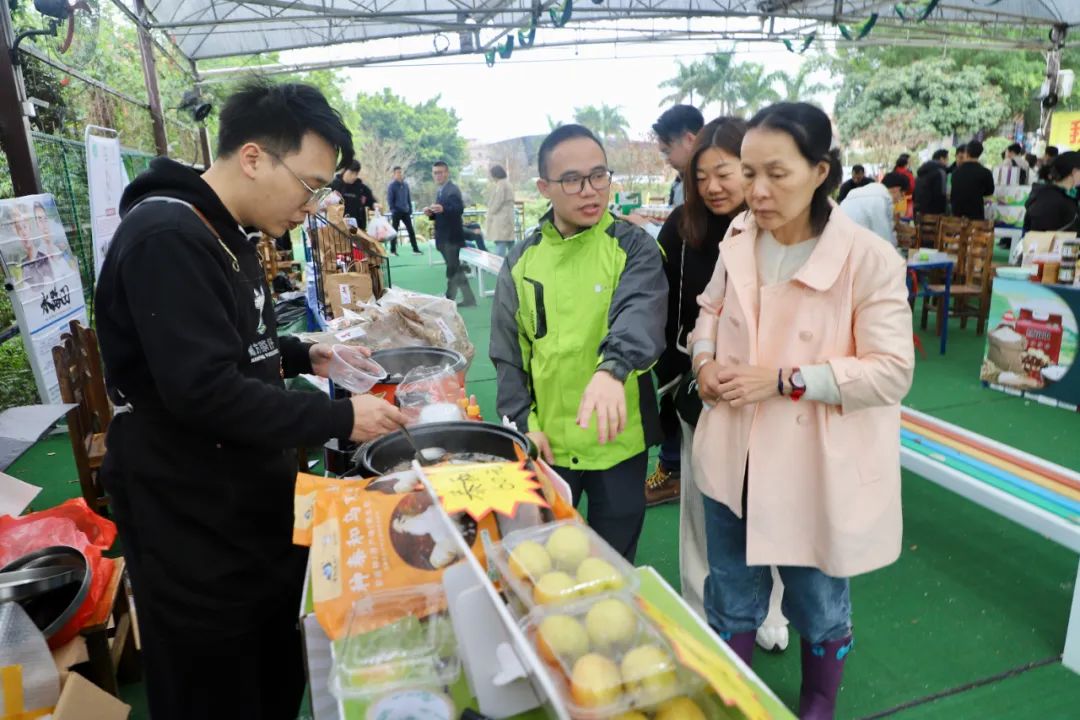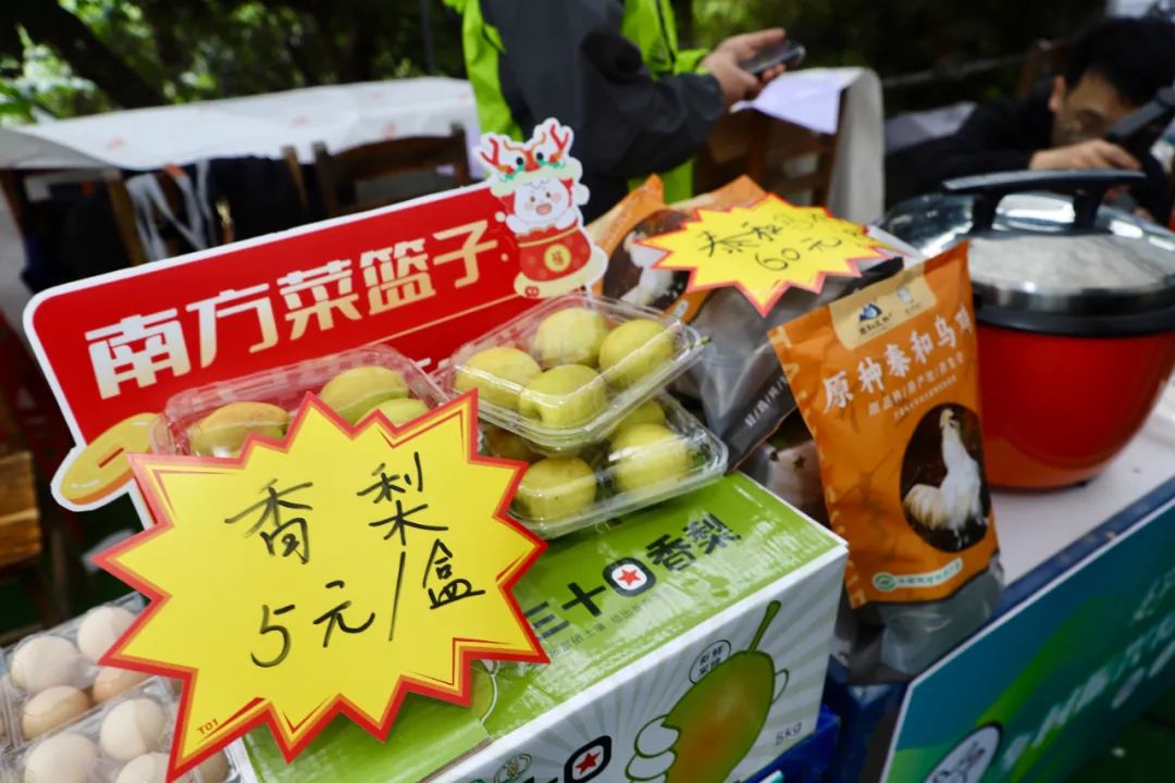此次助農(nóng)集市開設(shè)了對口幫扶地區(qū)產(chǎn)品展銷專區(qū),集中展示廣州市幫扶合作7省、11地市、63縣(區(qū))和花都區(qū)等地優(yōu)質(zhì)農(nóng)副產(chǎn)品,吸引了眾多農(nóng)業(yè)企業(yè)、合作社、家庭農(nóng)場參與。廣東省連州市等地名優(yōu)特產(chǎn)及本土小吃在雨天仍持續(xù)熱銷,千斤高山紅薯“一掃而空”,深受市民喜愛。南方鄉(xiāng)投旗下南方菜籃子平臺廣東增城絲苗米、北大荒旗下益豆君豆腐等鄉(xiāng)村振興產(chǎn)品陳列上架銷售。