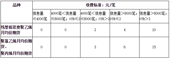 線型低密度聚乙烯月均價期貨各合約的交易限額為8000手,聚氯乙烯月均價期貨各合約的交易限額為18000手,聚丙烯月均價期貨各合約的交易限額為10000手。
