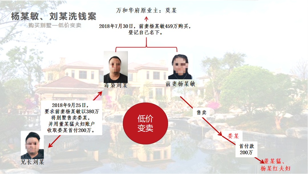 毒梟劉某被抓捕后,楊某敏與兄長(zhǎng)劉某通過(guò)房屋中介低價(jià)變賣別墅,套取毒資。