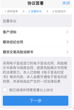10、客戶須仔細閱讀并同意后方可進行下一步。簽署協(xié)議界面: