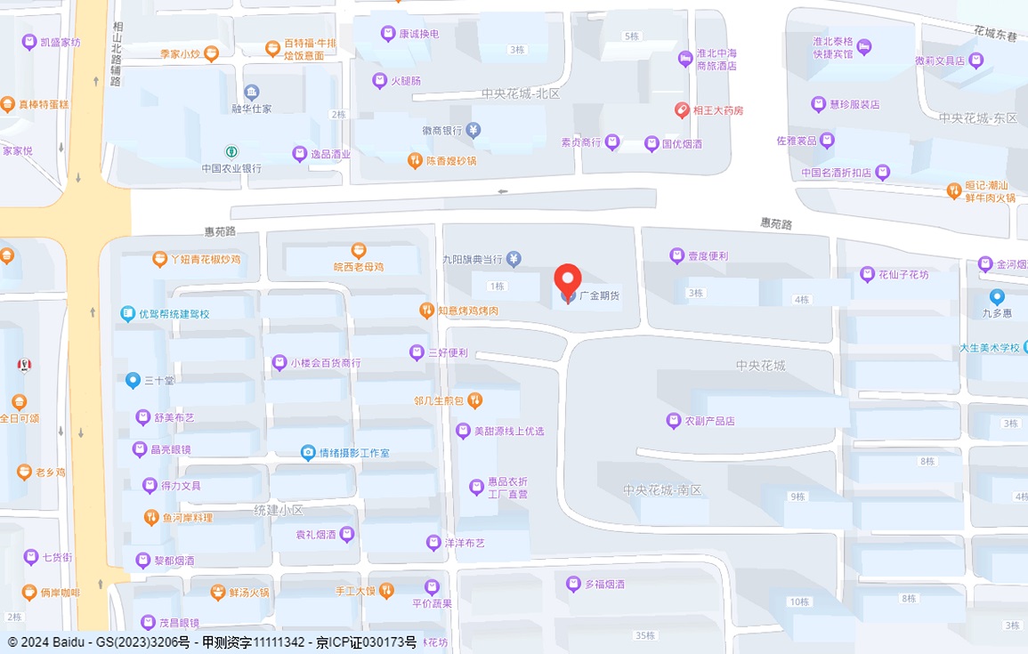 廣州金控期貨有限公司淮北營(yíng)業(yè)部位于安徽省淮北市相山區(qū)惠苑路77號(hào)中央花城(南區(qū))2幢103號(hào)商鋪。營(yíng)業(yè)部設(shè)有會(huì)議室,開(kāi)戶區(qū)、接待區(qū)等,環(huán)境優(yōu)良,配套設(shè)施齊全。 營(yíng)業(yè)部秉承“為客戶創(chuàng)造價(jià)值,為企業(yè)和社會(huì)創(chuàng)造效益”的發(fā)展理念,結(jié)合當(dāng)?shù)氐牡乩砦恢煤彤a(chǎn)業(yè)環(huán)境,以優(yōu)質(zhì)團(tuán)隊(duì)和全員式服務(wù)理念竭誠(chéng)為客戶提供專業(yè)化服務(wù)。 廣金期貨淮北營(yíng)業(yè)部熱忱歡迎您,與您攜手并進(jìn)、共創(chuàng)美好未來(lái)。