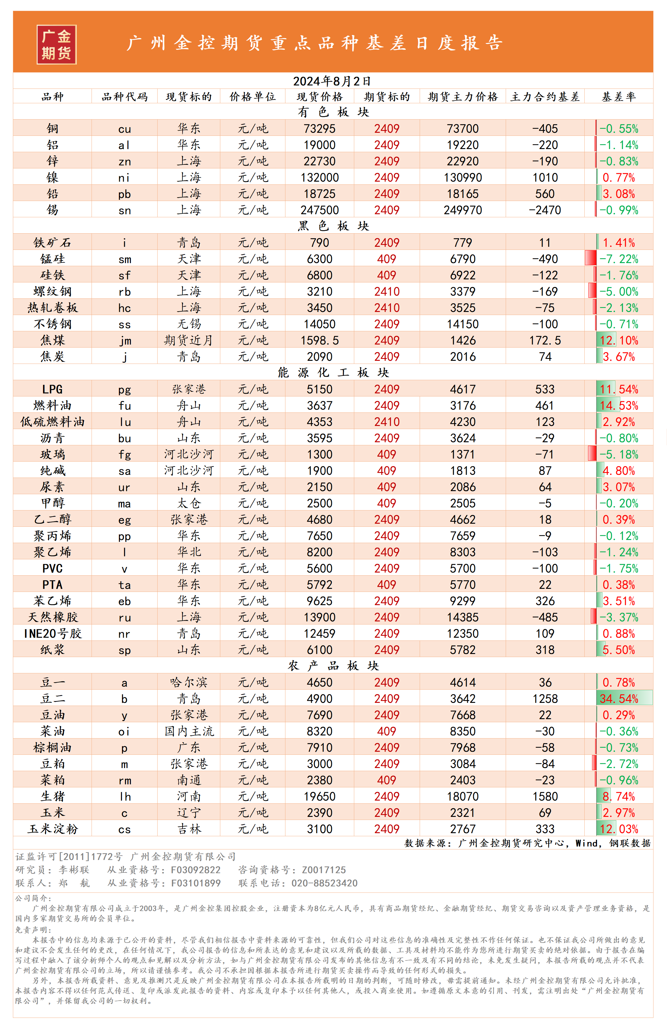 重點(diǎn)品種資金流向與基差日報(bào) 20240802