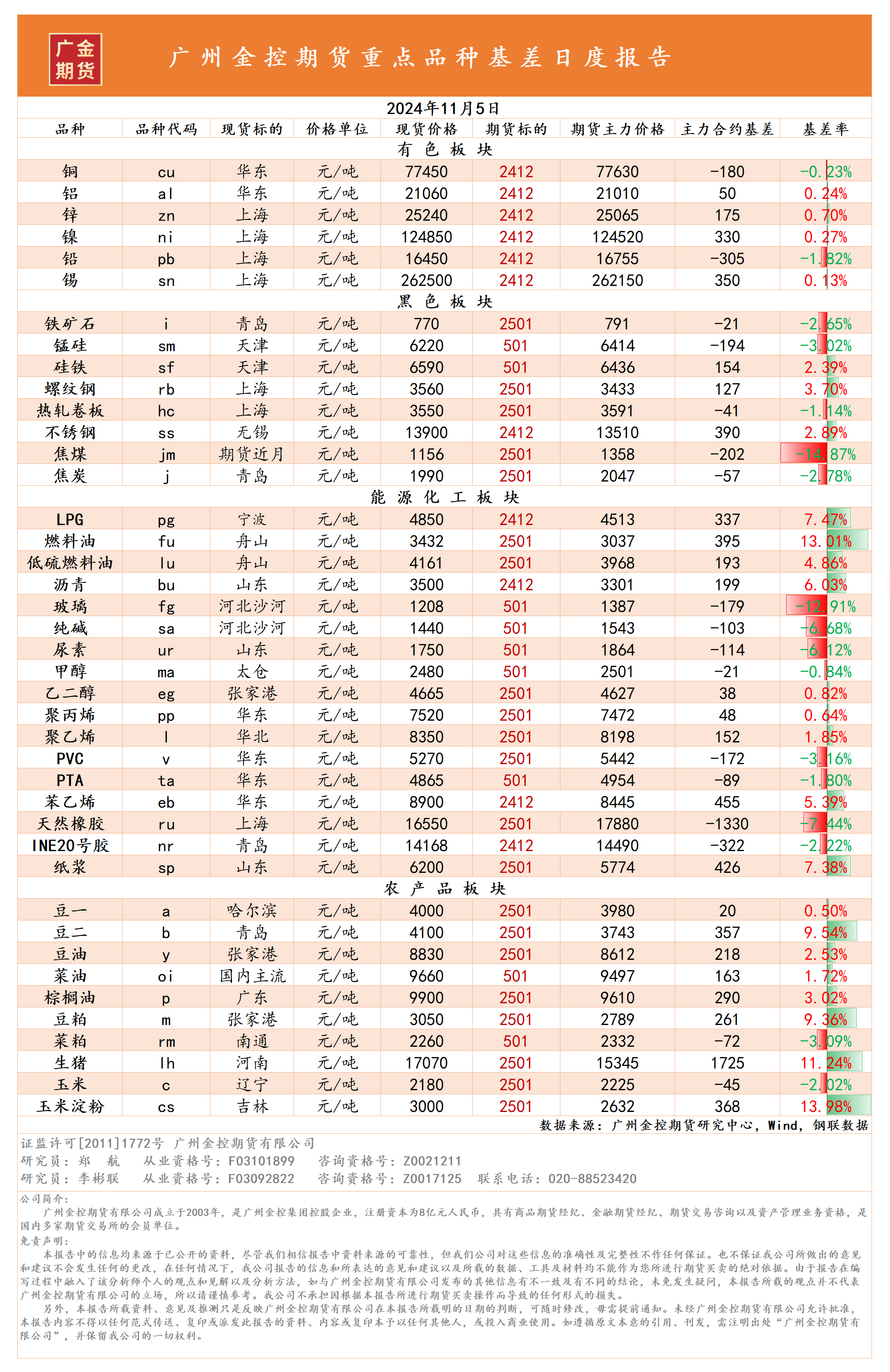 重點(diǎn)品種資金流向與基差日?qǐng)?bào) 20241105