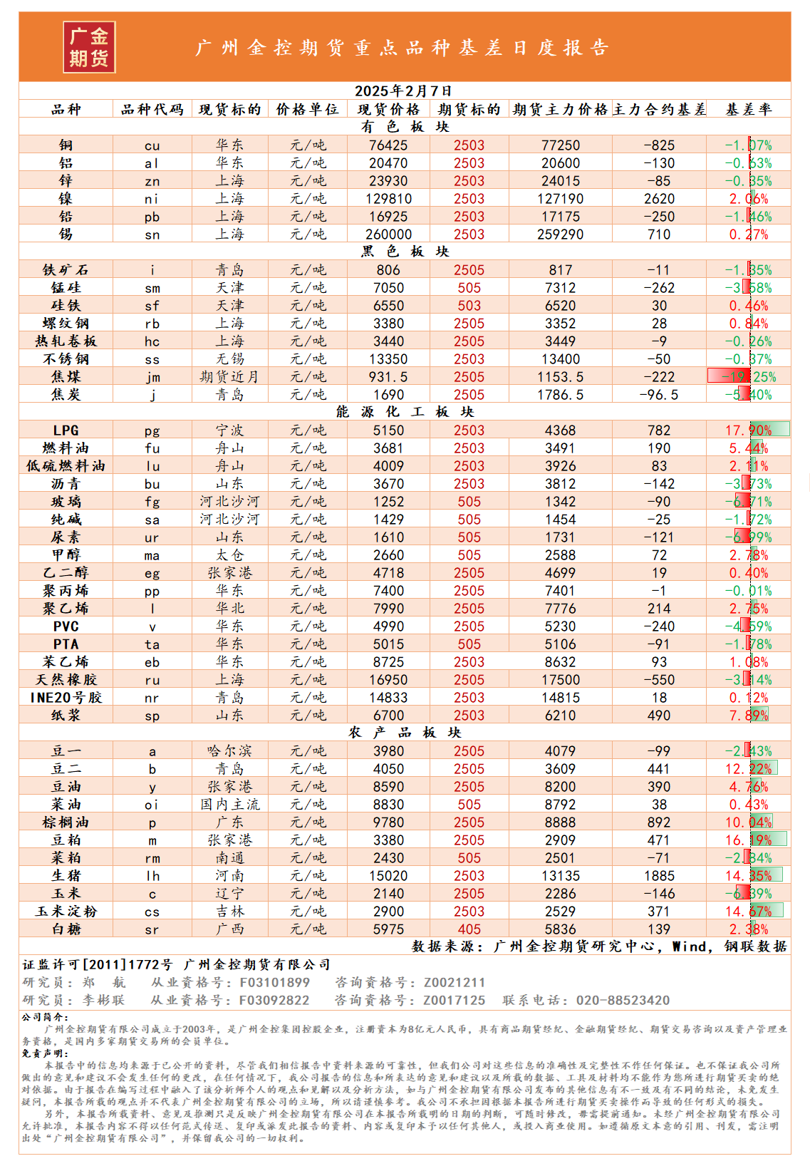 重點(diǎn)品種資金流向與基差日?qǐng)?bào) 20250207