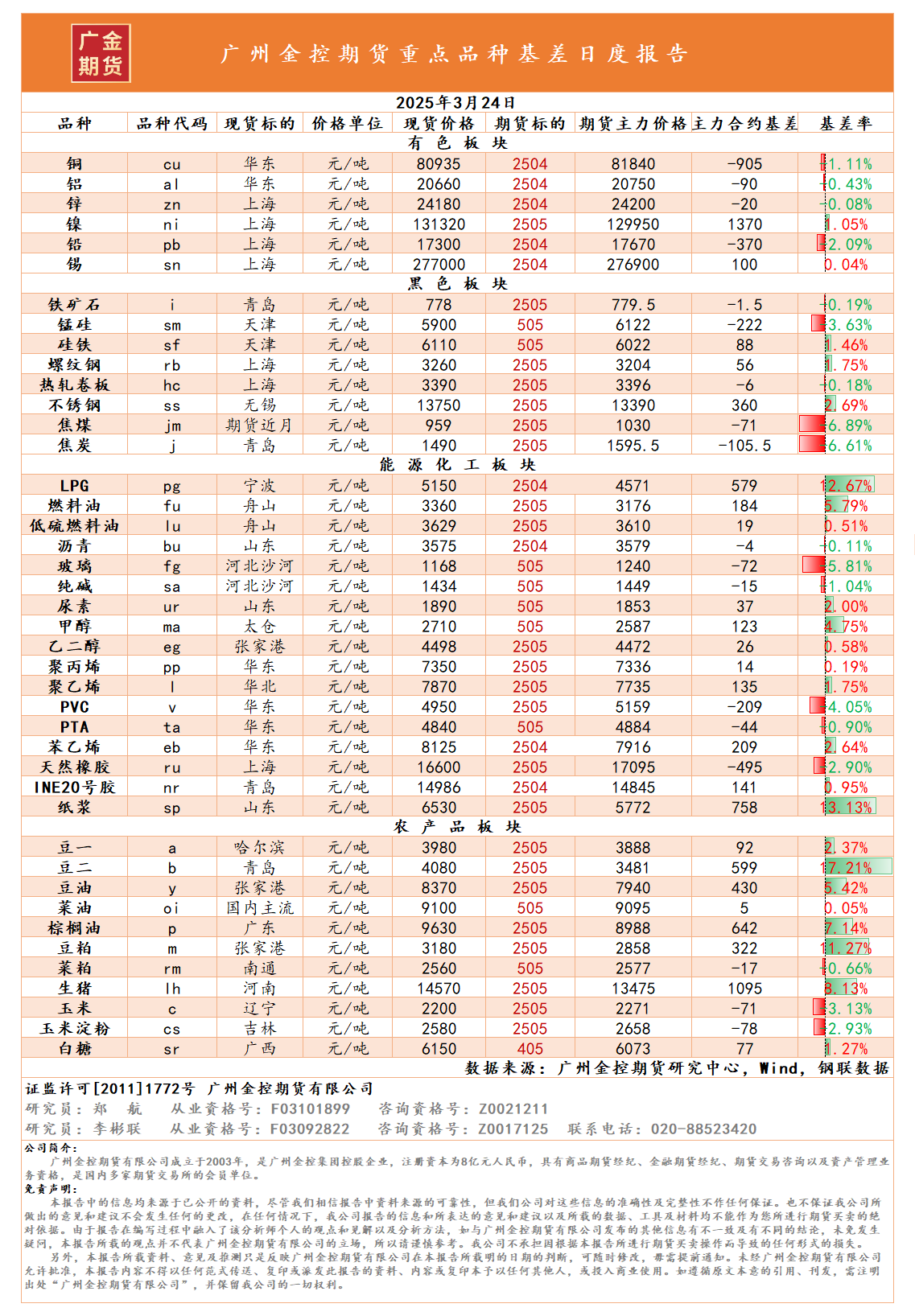 重點(diǎn)品種資金流向與基差日?qǐng)?bào) 20250324