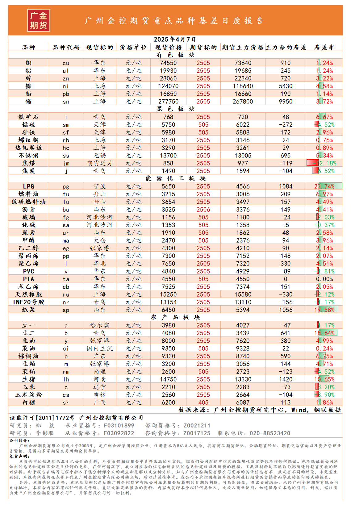 重點(diǎn)品種資金流向與基差日?qǐng)?bào) 20250407