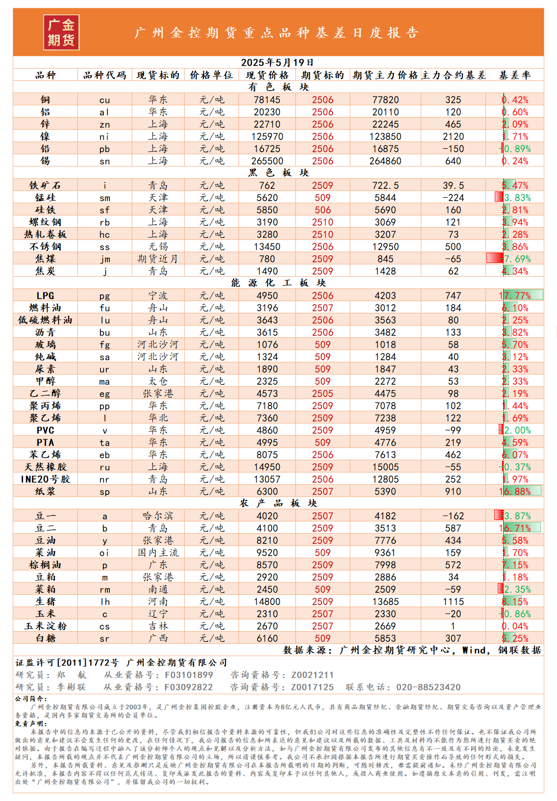 重點(diǎn)品種資金流向與基差日?qǐng)?bào) 20250519