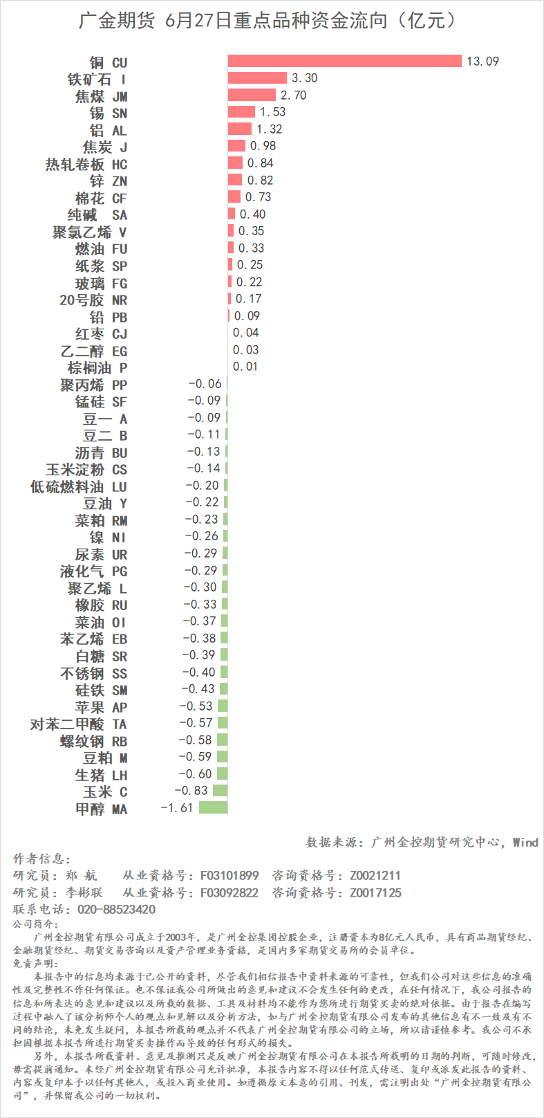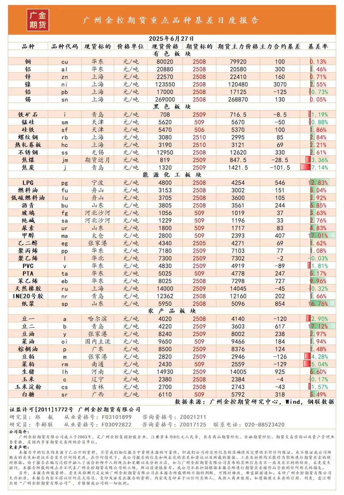 重點(diǎn)品種資金流向與基差日報(bào) 20250627