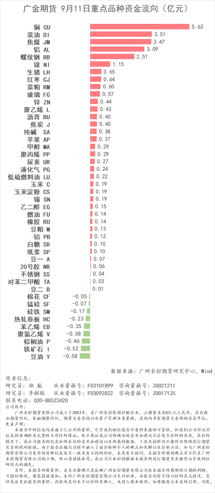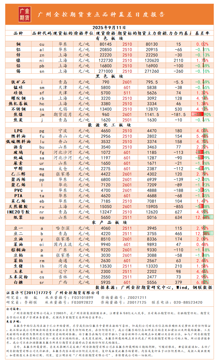 重點(diǎn)品種資金流向與基差日報 20250911