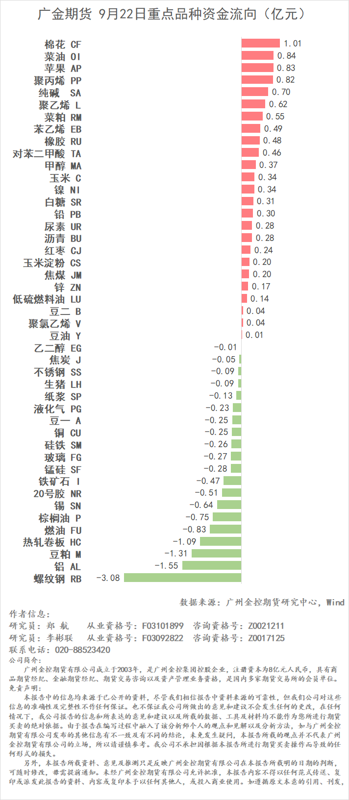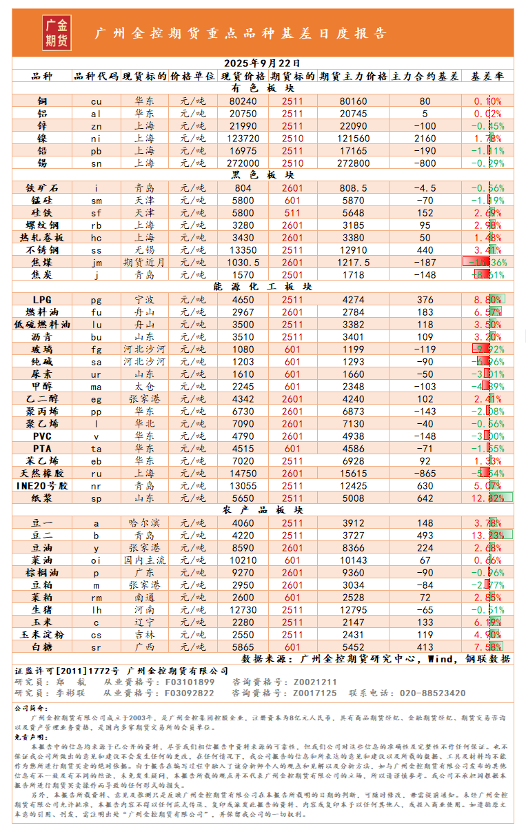 重點(diǎn)品種資金流向與基差日?qǐng)?bào) 20250922